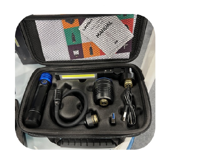 OneClick Multi-Function Flashlight Pack: Portable power system enables instant swapping of accessory heads with just click on/off by the proprietary spring loading and ejection mechanism (Patent No.: US 11,680,688 B1). This enables you to simply convert the ONE CLIK power handle into a versatile power source to make the flashlight endless applications. The accessory heads and USB charge cable are all neatly stored in the handy storage box. There are multiple choices of flashlight heads, each is all less than 10 dollars.