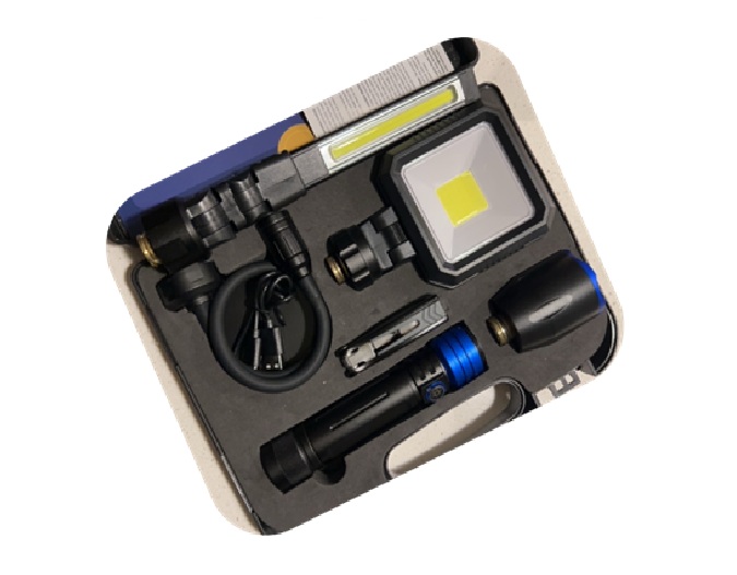 OneClick  Multi-Function Flashlight Pack: Portable power system enables instant swapping of accessory heads with just click on/off by the proprietary spring loading and ejection mechanism (Patent No.: US 11,680,688 B1). This enables you to simply convert the ONE CLIK power handle into a versatile power source to make the flashlight endless applications. The accessory heads and USB charge cable are all neatly stored in the handy storage box. There are multiple choices of flashlight heads, each is all less than 10 dollars.